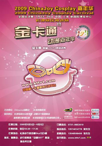 “金卡通”(www.kttv1.com)网站作为中国第一卡通原创互动平台将盛情参与其中,并承办 2009 ChinaJoy Cosplay嘉年华长沙分赛区预选赛,积极与湖湘动漫爱好者和企业一起携手打造动漫视听盛宴。湖南各地的职业Cosplay团队正在为这场盛会积极准备。省内老牌Cosplay队伍晴空之星、冰火动漫社、ZERO动漫社、长大FEEL动漫社、长沙漫联等社团的会员都纷纷表示,要以最“专业”最“劲爆”的表现来参加本届ChinaJoy Cosplay嘉年华长沙分赛区预选赛。