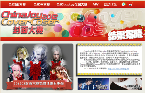 2012 ChinaJoy Cover Coser 封面大赛专区地址:http://2012cjcc.chinajoy.net