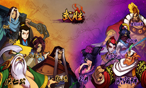 《武胜》是一款Q版水墨画风画面,武侠风格的APRG网页游戏,以金庸、古龙等经典武侠风格融合为游戏背景。以清新的画风,宏伟的世界观以及创新的玩法,为玩家带来一场2D网页游戏的极致盛宴。