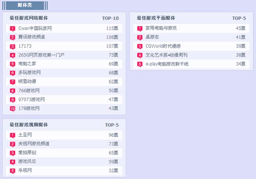 首先玩家最喜爱的十大网络游戏榜单中“九阴真经”“倩女幽魂”“地下城与勇士”始终占据前三甲的位置,不难看出玩家们对这三款游戏的情有独钟。而人气颇高的“剑侠情缘3”则被“成吉思汗3”和“画皮II”赶超,看来是处处不可松懈。玩家最期待的十大网络游戏榜单中“黑金”再次夺魁,一拥而上的“圣斗士星矢”“EVEonline”等游戏则在后方虎视眈眈随时有赶超的可能。最佳原创网络游戏榜中“斩魂”暂时领先,但以“九阴真经”和“成吉思汗3”的增长幅度来看之后可能又是另一番景象。最佳境外网络游戏榜中变化不大,“洛奇英雄传”稳居首位,而“梦幻诛仙2”则在最佳Q版网络游戏榜中遥遥领先,居后的游戏压力可想而知。页游方面“卧龙吟”“大侠传”“神曲”等游戏在玩家最喜爱的网页游戏榜上暗暗较劲,同时在玩家最期待的网页游戏榜上首位的“萌三国”则被黑马“童萌镇”紧追不舍。手游部分在最佳移动平台游戏榜单中“海扁西游记”和“捕鱼达人”始终在冠、亚位上争夺输赢,而“博雅斗地主”则逆流而上,占领本周最佳移动平台游戏榜首。