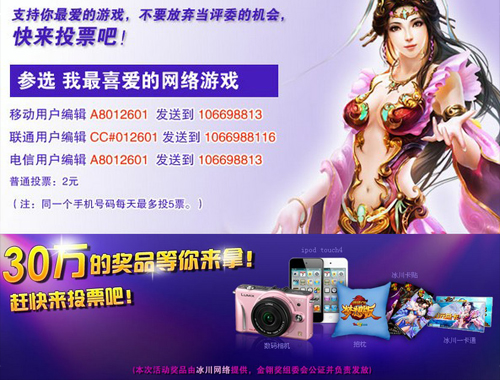 ¡¡¡¡2012½ðôá½±×÷Ϊ¹úÄÚÓÎÏ·Òµ½ç×îΪȨÍþµÄÆÀÑ¡»î¶¯Ö®Ò»£¬Ä¿Ç°Æ±Ñ¡½×¶ÎÕý»ðÈȽøÐÐÖÐ ¡£±ù´¨ÍøÂçÆìÏÂÕæÈÈѪPKÍøÓΡ¶Ô¶Õ÷OL¡·½«²ÎÓë“Íæ¼Ò×îϲ°®µÄÍøÂçÓÎÏ·”½±ÏîµÄÆÀÑ¡¡£¡¶Ô¶Õ÷OL¡·×ÔÕýʽÔËÓªÀ´£¬Æ¾½è×Å×Ô´´Î书¡¢³á°òÁéÓðϵͳ¡¢Èý»êϵͳµÈÊýÊ®ÖÖÌØÉ«ÏµÍ³£¬Ò»Ö±µÃµ½¹ã´óÍæ¼ÒµÄÖ§³ÖÓëÈϿɡ£