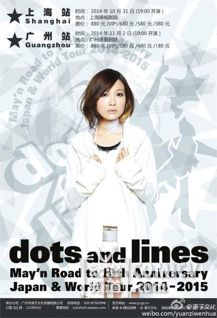 然后,在即将来到的2014年10月31日与11月2日,我们将再一次相约聚首。粉丝们一定不会忘记与部长的约定,正如演唱会的副标题,dot and line——众多的点所连成的线,我们一定不会让它终结!再一次随着这让人兴奋的延长线,部长May’n来到我们身边,我们也来到部长身边: