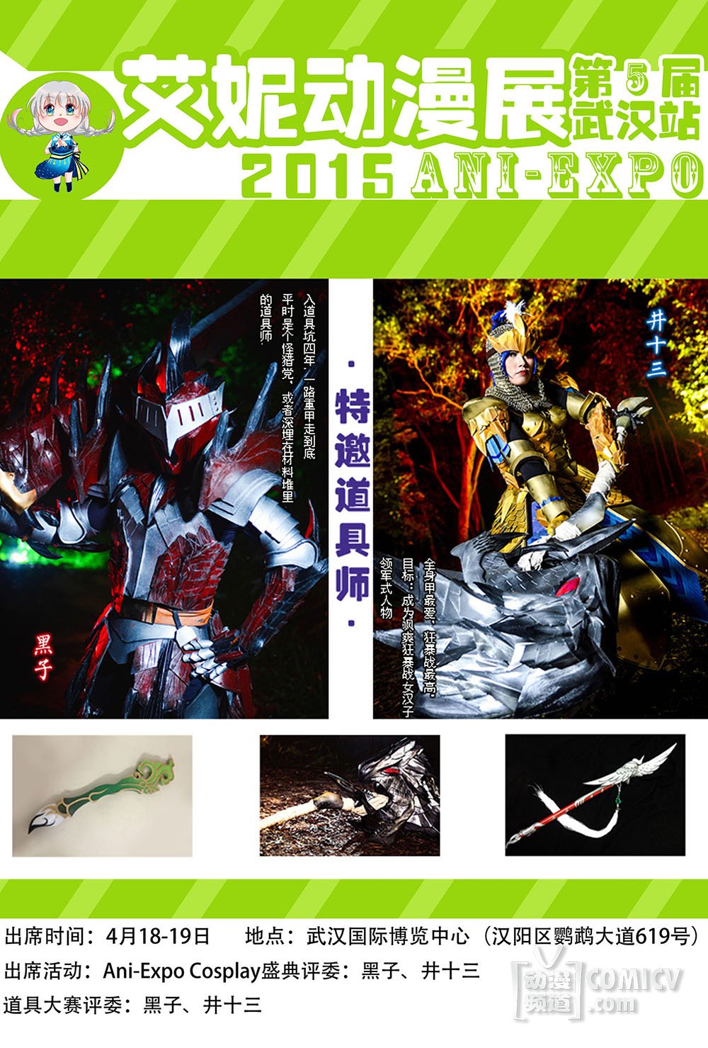 来自广州道具工作室“黑井重工”的黑子与井十三,将在4月18-19日为大家带来视觉上的体验,道具的爱好者们可不能错过呀