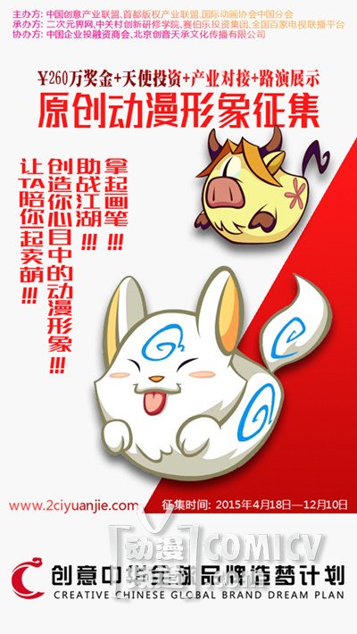 每一个人都拥有自己的梦想。为了鼓励更多有梦想的人实现自己的梦想,由中国创意产业联盟、首都版权产业联盟、国际动画协会中国分会主办,赛伯乐投资集团、中关村创新研修学院、二次元界网、全国百家电视台联播平台承办,中国企业投融资商会、北京创音天承文化传播有限公司协办的“创意中华2015全球品牌造梦计划原创动漫形象征集活动”已经进行了一个月了,收到作品上百个。笔者八年来一直研究国内的各种动漫赛事,此活动的比赛模式和奖项设置完全不同一般的动漫比赛。为此,笔者对承办方二次元界网副总经理李洋先生(网名御京鬼丸、丸子)进行了当面采访。李洋先生就创意中华活动、中国创意天使投资团发起的寻找100个有梦想的动漫大咖活动进行了更一步的说明,并向动漫作者们提出邀约。