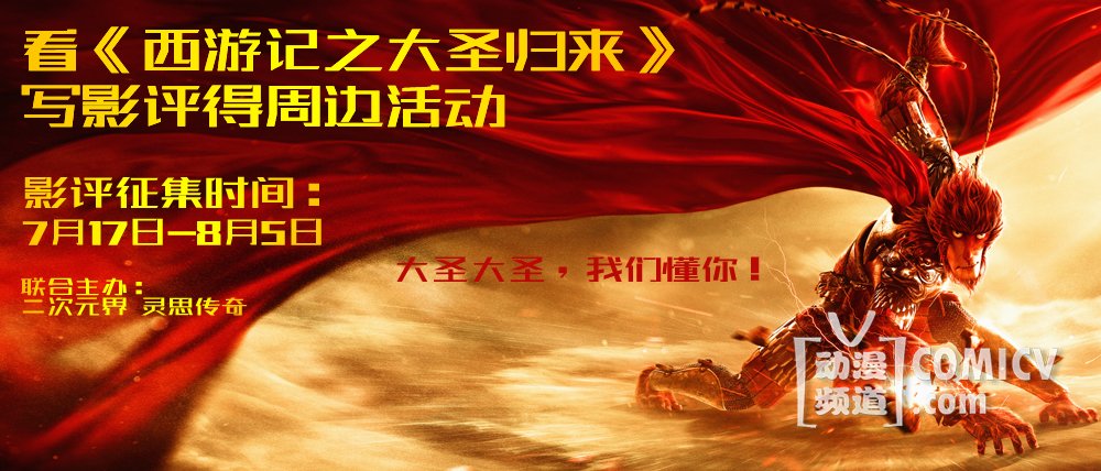 动画电影《西游记之大圣归来》于2015年7月10日登陆国内大银幕,男神大圣和萌萌哒小和尚江流儿一登场立即燃遍全国!二次元界联合《西游记之大圣归来》营销宣传方北京灵思传奇文化传媒有限公司共同推出:看《西游记之大圣归来》写影评得周边活动。