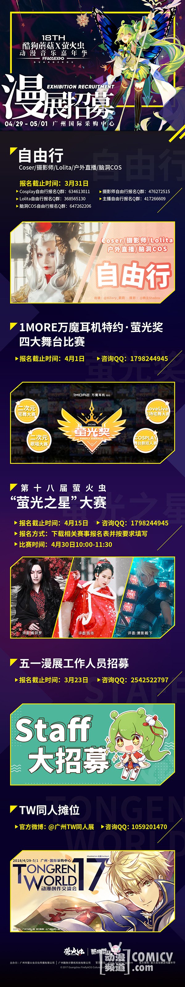 漫展Staff!五大自由行!TW同人摊位!1MORE万魔耳机特约“萤光奖”舞台比赛!各大招募均已接近报名截止时间!别再犹豫啦!赶快来【萤火虫动漫天下】了解详情吧~