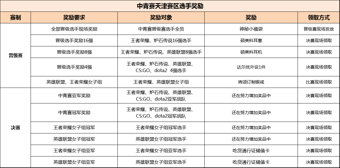 天津赛区决赛将于5月26-27日,在天津工业大学体育馆举行,届时将在天津电竞微信平台、大麦网、哔哩哔哩会员购开售线上售票,决赛现场也有门票出售。选手奖励内容