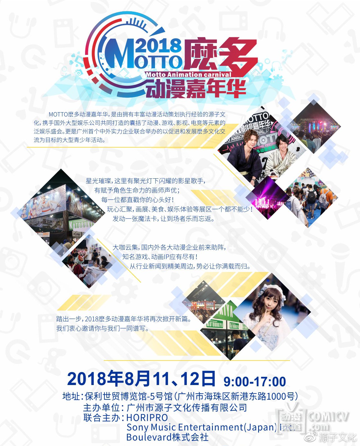 相信大家对索尼音乐是再熟悉不过,旗下艺人,歌手,创作者无数;它的加入,将为麽多动漫嘉年华及音乐节会带来更多的资源与内容,更强大的嘉宾阵容,更丰富的现场活动环节。相信大家都已经迫不及待,那么敬请拭目以待吧!四大主办将一同为所有爱好者打开一扇通往新世界的大门!